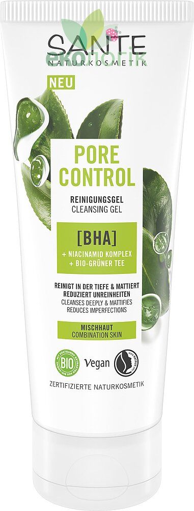 Sante БІО-Гель PORE CONTROL для вмивання комбінованої шкіри обличчя з BHA-кислотою, ніацинамідним комплексом та зеленим чаєм 100 мл