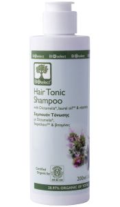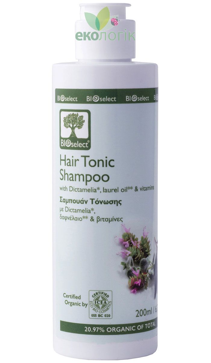 Натуральний склад шампуню спеціально розроблений без домішок лаурилсульфат натрію / SLS. Забезпечує ніжне, але ретельне очищення волосся, живлячи шкіру голови. Оливкова олія, яка присутня у складі засобу, збагачена екстрактом діктамо (бальзам діктамелія),що заспокоює шкіру голови, перешкоджає появі подразнень, живить і відновлює волосся, робить його більш густим та сильним. Завдяки пантенолу (провітаміну В5), який захищає структуру волосся від зовнішніх негативних факторів, надає йому міцність та сяйво, попереджає розшарування. Лаврова олія, що збагачує формулу, інтенсивно зволожує, відновлює структуру пошкодженого та ослабленого волосся, живить, захищає епітелій, що дозволяє використовувати шампунь для інтенсивного росту. Тонізуючий шампунь BIOSelect, завдяки органічним складовим, підходить для щоденного застосування, допомагаючи не тільки боротися з випадінням волосся, але й доглядати за ним, відновлюючи пошкоджену структуру та посічені кінчики.