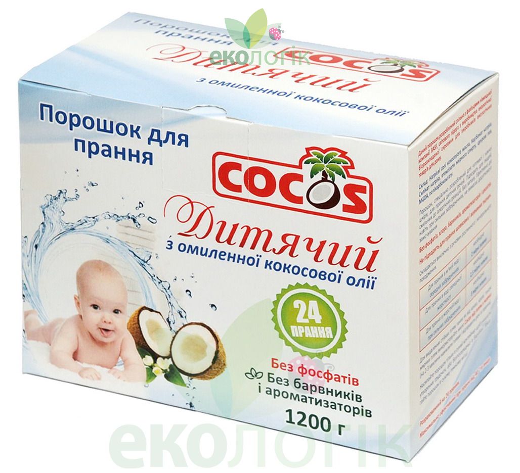 Cocos Безфосфатний пральний порошок Дитячий з омиленої кокосової олії 1,2 кг - до 24 циклів прання