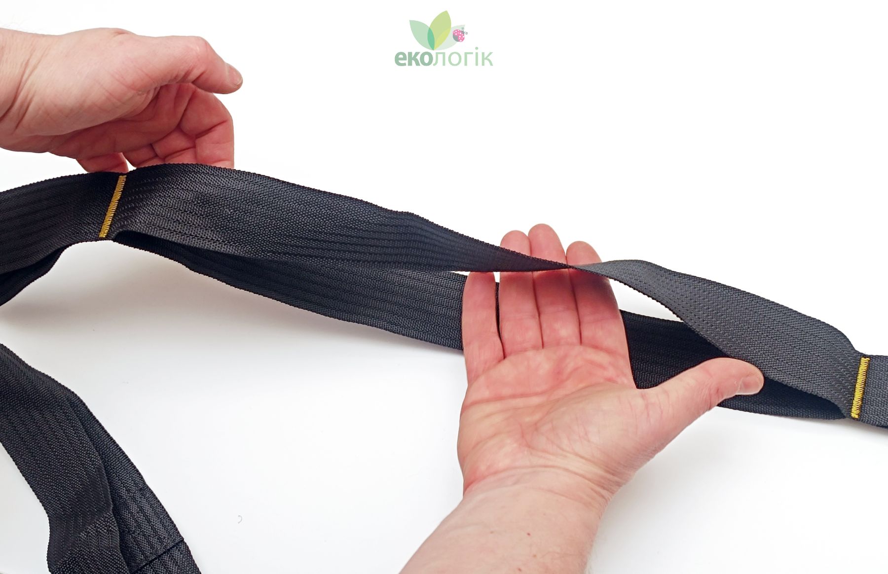 Стропа шириною 40 мм і довжиною 6 метрів: дві паралельні ремінні стрічки прошиті кожні 40 см, утворюючи петлі для перехвату руками, одна з паралельних стрічок перекручена для зручності швидкого просування між ними пальців руки
