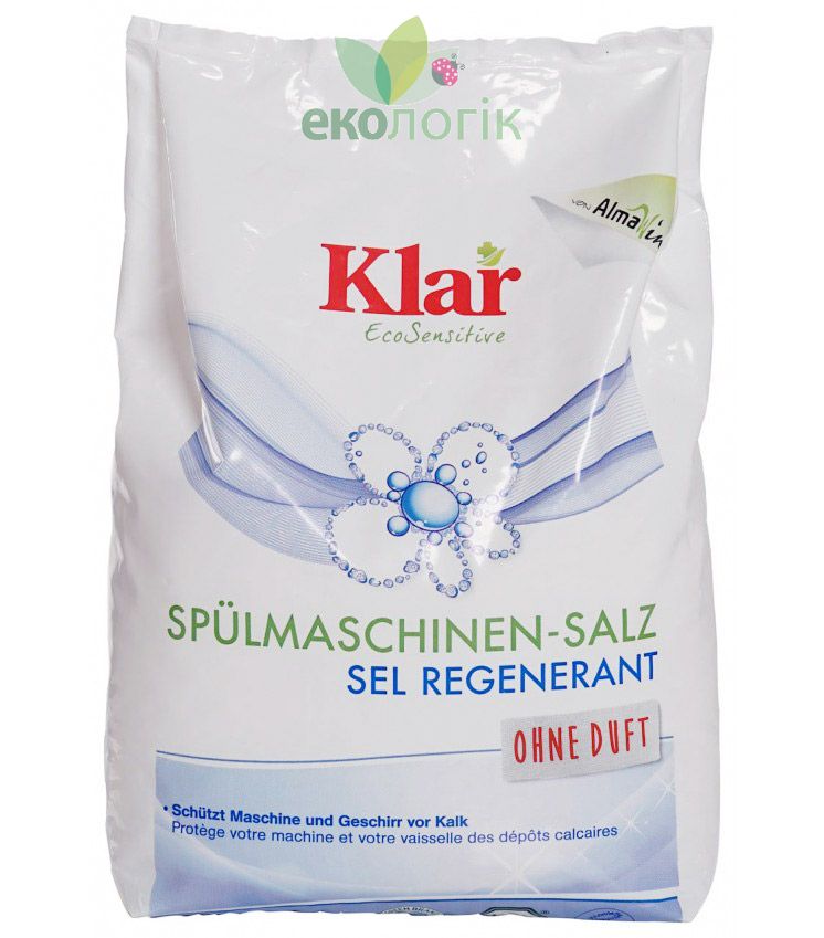 Сіль для посудомийної машини Klar повністю складається з вакуумної солі без залишків. Запобігає утворенню вапняного осаду на посуді та скляних виробах.