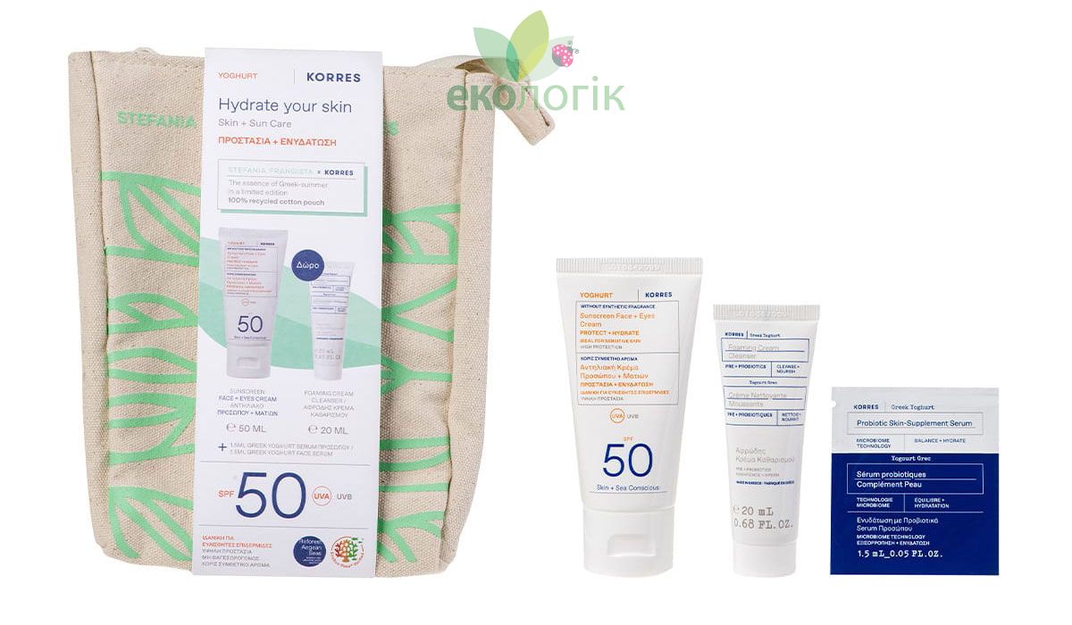 Korres Набір: Сонцезахисний крем для обличчя і під очі SPF 50 + Міні-крем-пінка очищаюча + Тестер сироватка