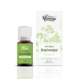 Застосування: ефірна олія коріандру використовується як в чистому вигляді, так і в композиції з іншими ефірними оліями - комплементарними ароматами (аніс, базилік, бергамот, герань, жасмин, іланг-іланг, імбир, кориця, кипарис, ладан, лайм, лимон, мускатний горіх, неролі, сандал, сосна, цитронелла, шавлія).