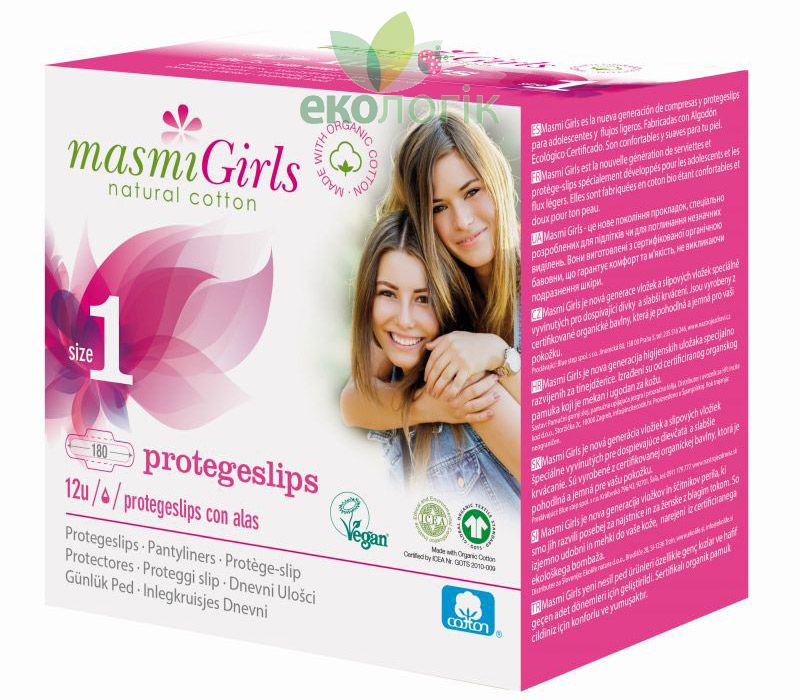 Ультратонкі гігієнічні прокладки серії GIRL спеціально розроблені з урахуванням анатомічних особливостей підліткового віку. Спеціальний розмір 1 прокладок MASMI рекомендується використовувати в період незначних виділень, в останні дні місячних або в якості щоденних прокладок, коли ти тільки чекаєш початку «критичних днів». Спеціальна форма і м'яка натуральна поверхня роблять використання прокладок максимально комфортним і непомітним. Прокладки виготовлені з органічної бавовни, вирощеної без використання хімічних пестицидів і гербіцидів, а також без використання хлору і діоксину в процесі відбілювання. Не містять ароматизаторів, гелюабсорбенту, пластику, що не розкладається в природі, і канцерогенних речовин. Повністю натуральні матеріали не викликають відчуття «парникового ефекту», підтримуючи оптимальний рівень вологості та повітропроникності для ще більшого комфорту. Клінічно протестовано на гіпоалергенність, знижує ризик виникнення подразнень і алергій, запобігаючи появі жіночих хвороб.