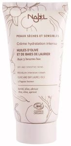 Інтенсивно зволожуючий крем Najel створений для живлення та позбавлення від відчуття стягнутості сухої і чутливої шкірі. Він виготовляється з трьох органічних олій із надзвичайно поживною силою: ши, оливкової та абрикосової та поєднує їх живильну силу із заспокійливими властивостями органічної олії лавра для відновлення та інтенсивного зволоження сухої шкіри щодня.