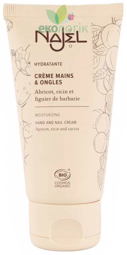 Щоб отримати зволожуючий* та живильний крем для рук , Laboratoire NAJJAR поєднала органічну абрикосову олію , яка має регенеруючі, пом’якшувальні та зволожуючі властивості, разом з органічною касторовою олією .Дуже багата олеїновою кислотою рицину, вона живить шкіру та допомагає боротися з зимовими тріщинами. Відомо також, що касторова олія сприяє росту нігтів , робить їх міцнішими і красивішими. Органічний екстракт соку опунції має високі зволожуючі властивості, які живлять шкіру та сприяють її пом’якшенню.