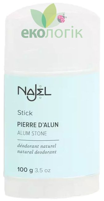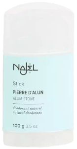 Квасцовий камінь - мінерал, який є основою засобу. У необробленому вигляді це прозорий кристал без запаху. Najel пропонує його у відполірованому вигляді у формі стіку, відповідно до форми пахв для швидкого нанесення. Він нейтралізує потовиділення та запобігає розвитку бактерій, заспокоює чутливу шкіру пахв. Також є гіпоалергенним, оскільки не містить ніяких синтетичних добавок.