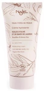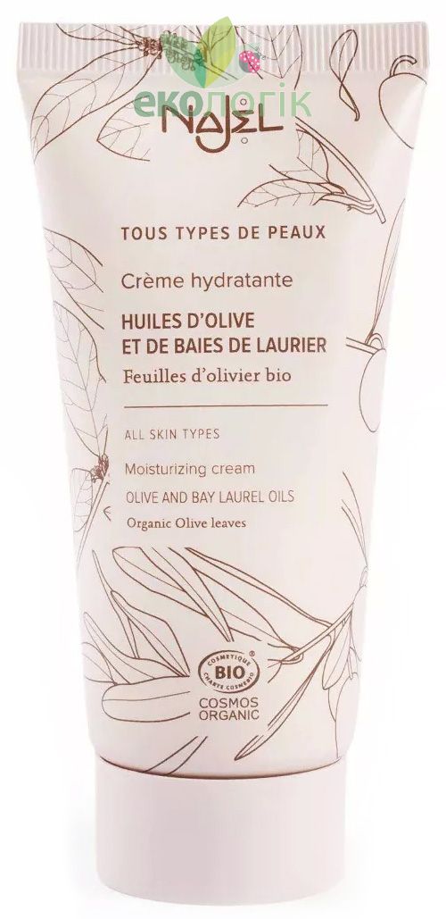 Зволожуючий крем для обличчя Najel створений, щоб забезпечити оптимальний комфорт для всіх типів шкіри. Він містить органічний гідролат листя оливи, відомий своїми антиоксидантними властивостями, органічну оливкову олію та гідрогенізовану оливкову олію, яка є потужнім емолентом, що допомагає утримувати вологу в шкірі та є джерелом антиоксидантів. Крем також містить олію органічного лавра, яка має заспокійливу дію.
