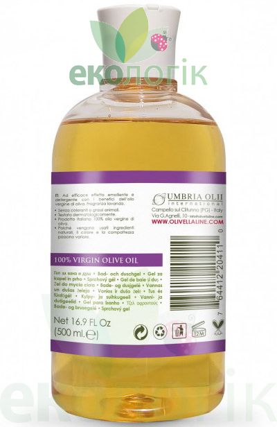 Снять напряжение днем, расслабиться после тяжелого дня и подготовиться к приятным сновидениям вечером, мысленно перенестись в поле, где цветет лаванда поможет гель для ванны и душа OLIVELLA на основе оливкового масла! Инновационный продукт и запатентованная технология позволяет сохранить максимум полезных свойств оливкового масла в конечном продукте без дополнительных добавок! Гель для душа OLIVELLA необычайно нежно очищает кожу, оставляя при этом её мягкой и нежной. Формула геля для ванны и душа OLIVELLA содержит в основе нейтральное мыло, изготовленное из 100% оливкового масла Virgin без применения химических процессов, губительных для стероловой фракции и жирных кислот, содержащихся в нем, без красителей и консервантов. Поэтому гель для душа OLIVELLA идеально подходит для частого использования для всех членов семьи для любого типа кожи! Богатое витаминами А, D, E оливковое масло в основе геля для душа нейтрализует воздействие свободных радикалов, раскрывая природные преимущества омолаживающих свойств оливкового масла.