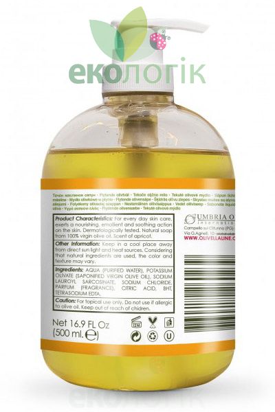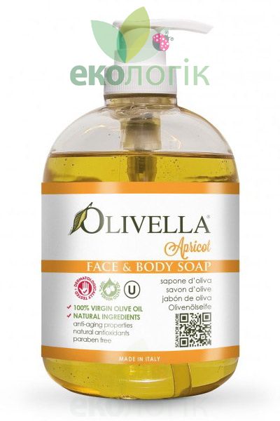 OLIVELLA Жидкое мыло для лица и тела Абрикос на основе оливкового масла 500 мл