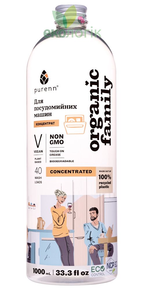 Organic Family Натуральний гель-концентрат для посудомийної машини 2в1 Очищення+Ополіскування 1 л