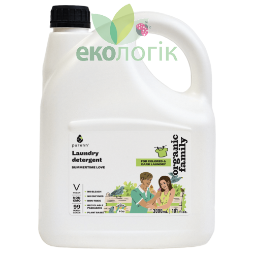Натуральні рослинні компоненти роблять твій одяг, рушники та постільну білизну чистими без шкоди для здоров’я! Формула прального засобу Purenn Organic Family зберігає яскравість кольорів твоїх речей, запобігаючи вицвітанню.