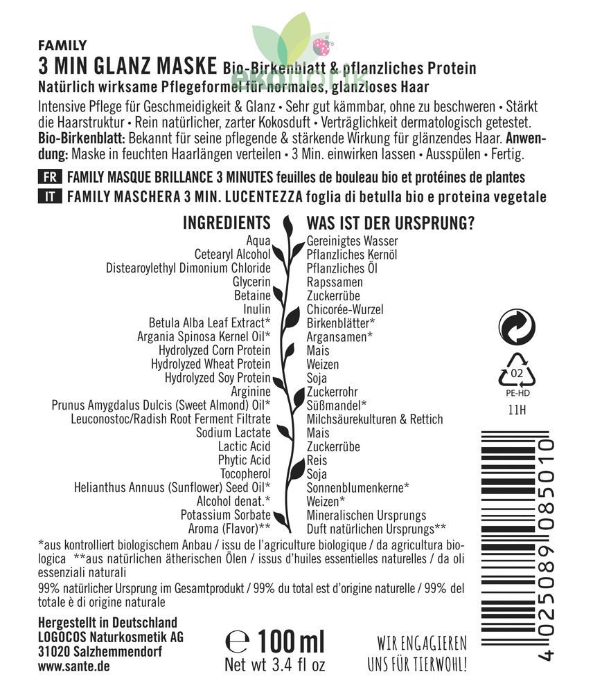 3 Min Glanz Maske Bio-Birkenblatt & pflanzliches Protein