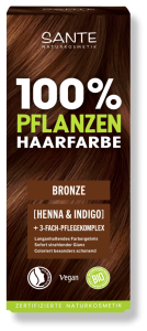 Хочете надати волоссю нового відтінку без пошкодження структури волосся — натуральна фарба SANTE з 100% рослинних інгредієнтів допоможе створити Вам новий образ і оздоровити волосся. Безпечний трав’яний склад без синтетичних барвників, ароматизаторів, аміаку, пироксидов та інших шкідливих хімічних сполук не тільки не пошкоджує Ваше волосся, але і надає їм життєву силу. Поєднання порошків шкаралупи волоського горіха, листя хни і індігофери створюють неповторний колір, бронзовий відтінок, блиск і сяйво з ефектом переливу каштанового волосся. Блискучий мідно-червоний відлив для впевнених в собі жінок додасть грайливі нотки в Ваш образ. Горіхова шкаралупа в складі фарби зміцнює волосяну цибулину, скорочуючи випадання волосся. Хна позитивно впливає на ріст волосся, впливаючи на лусочки волосся по всій довжині, хна запобігає розшаруванню при посічених кінчиках і ламкості волосся.