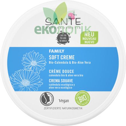 Одне універсальне рішення для щоденного догляду за тілом, обличчям та руками від SANTE NATURKOSMETIK для жінок, чоловіків та дітей! Натуральний крем SANTE Family Soft – це природний захист, зволоження та живлення шкіри щодня. Унікальна текстура крему легко розподіляється і швидко вбирається, при цьому чинить тривалий зволожуючий ефект, роблячи шкіру шовковистою та м'якою.