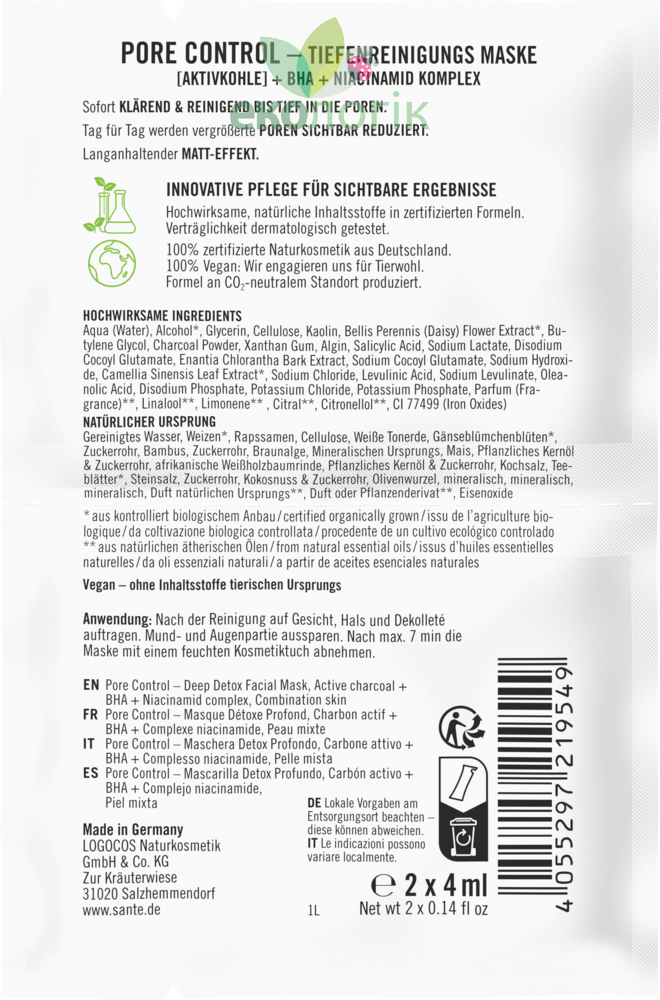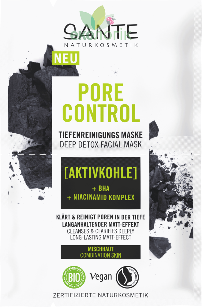 Увага – догляд за жирною та комбінованою шкірою потребує комплексної регулярної терапії протягом тривалого часу. Кращі результати будуть помітні при використанні всіх засобів лінійки PORE CONTROL від SANTE NATURKOSMETIK.