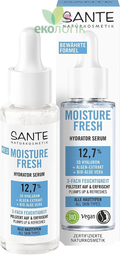 Sante БІО-Сироватка-супергідратор MOISTURE FRESH для зволоження обличчя з гіалуроновою кислотою та Алое 30 мл