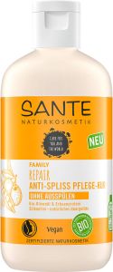 Оливкова олія інтенсивно живить волосся, усуваючи основну причину посічених кінців - сухість. Обволікаючі властивості лікувального засобу SANTE для волосся, що січеться, захищають його від хімічного та механічного впливу - необережного розчісування, укладання та пошкодження волосся в результаті фарбування. Кокосова олія не дає вимиватися кератину із структури волосся та утримує вологу всередині, повертаючи волоссю життєву силу. Оліїнова кислота, що міститься в складі, запобігає розшарування і ламкості волосся.