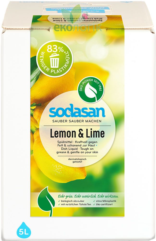 Sodasan Органічний рідкий засіб-концентрат Лимон-Лайм для миття посуду (BAG in BOX) 5 л