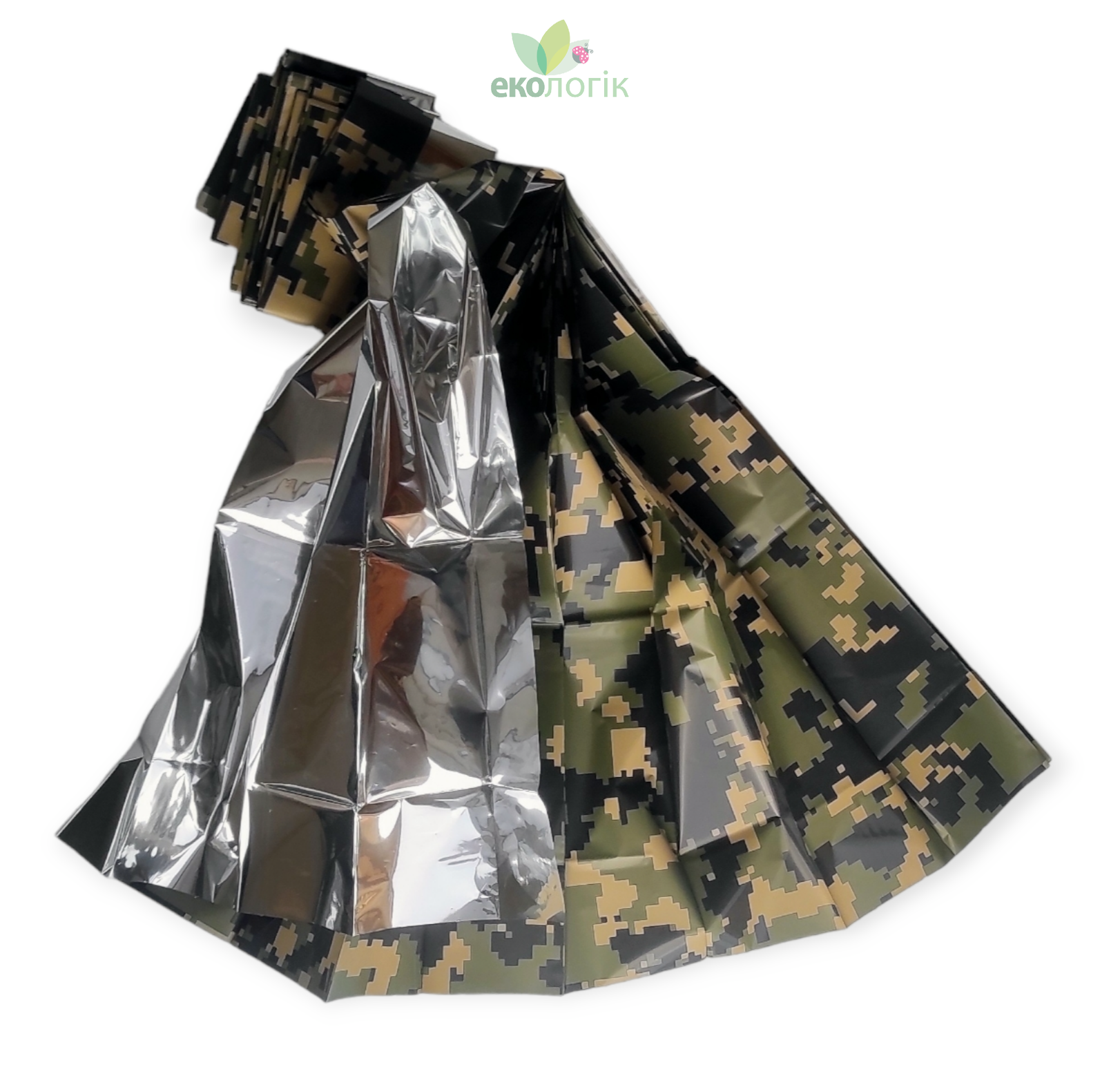 Термоковдра рятувальна срібло / піксель 160 × 210 см